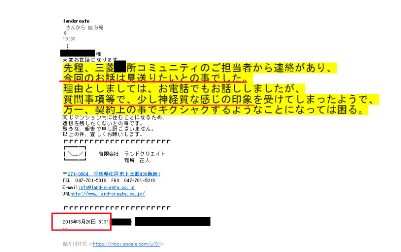 「被害者」の仲介担当『ランドクリエイト龍崎氏』