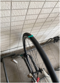 2023年6月21日 「タイヤ」に『テープ』《工事のため臨時駐輪場》